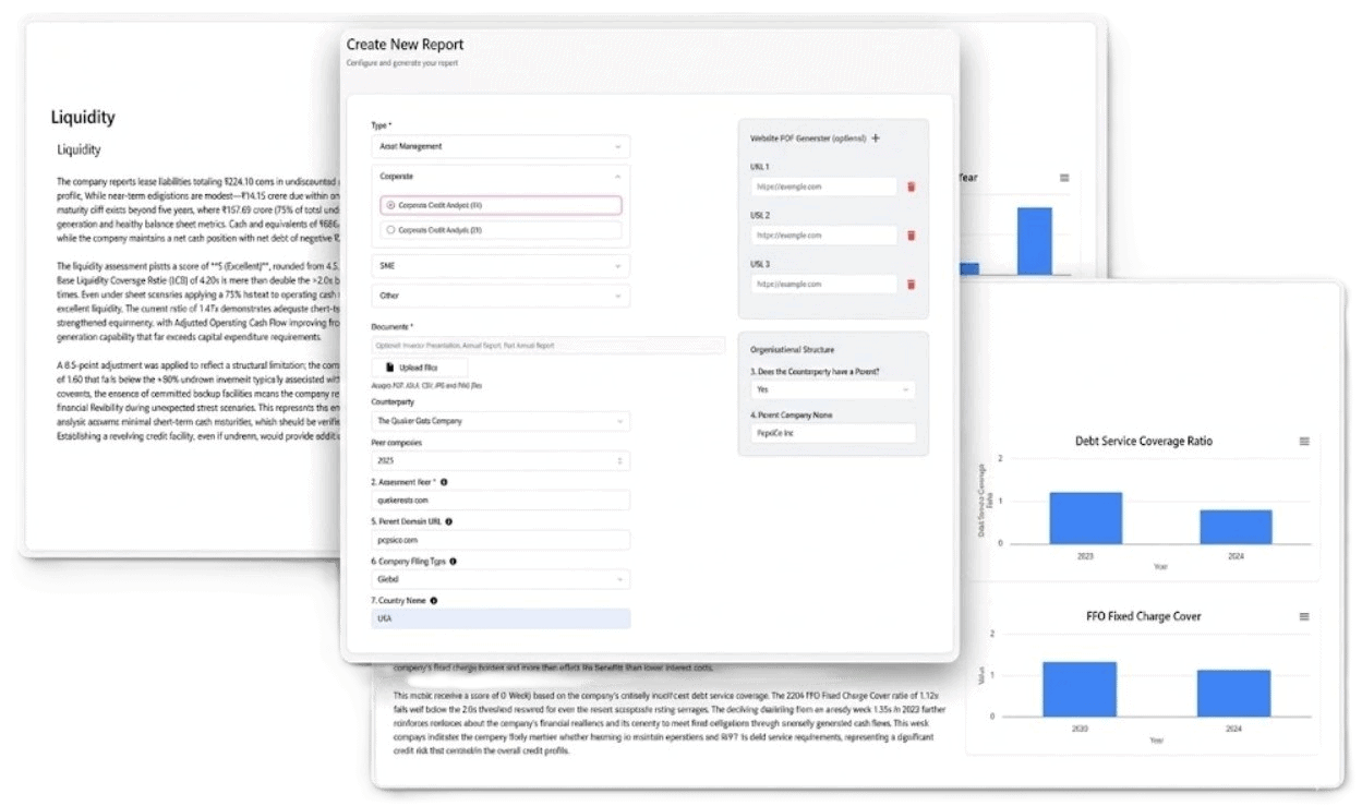 Upload financials, set your web search parameters, and submit. The platform analyses the information, applies structured credit methodology, assigns ratings, and delivers a first-draft report — ready for analyst review.